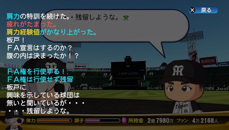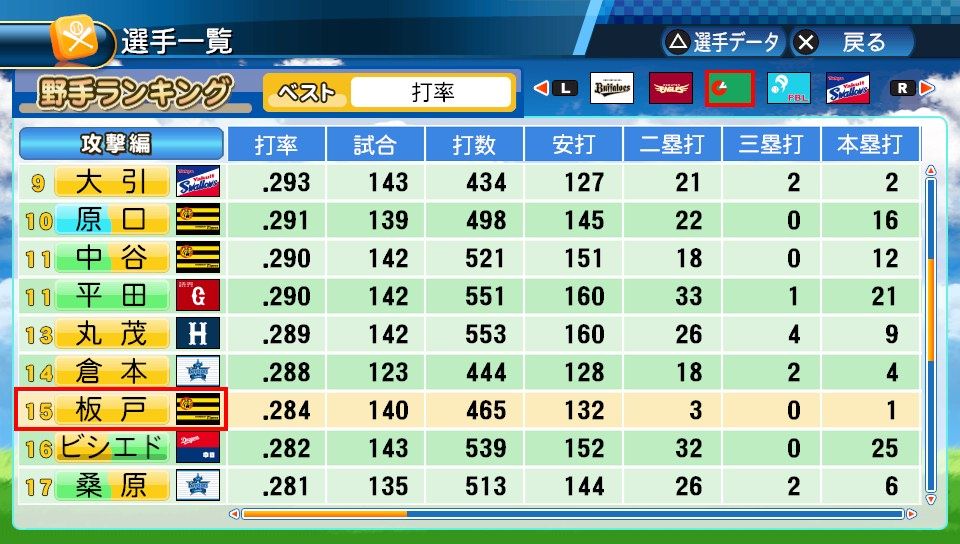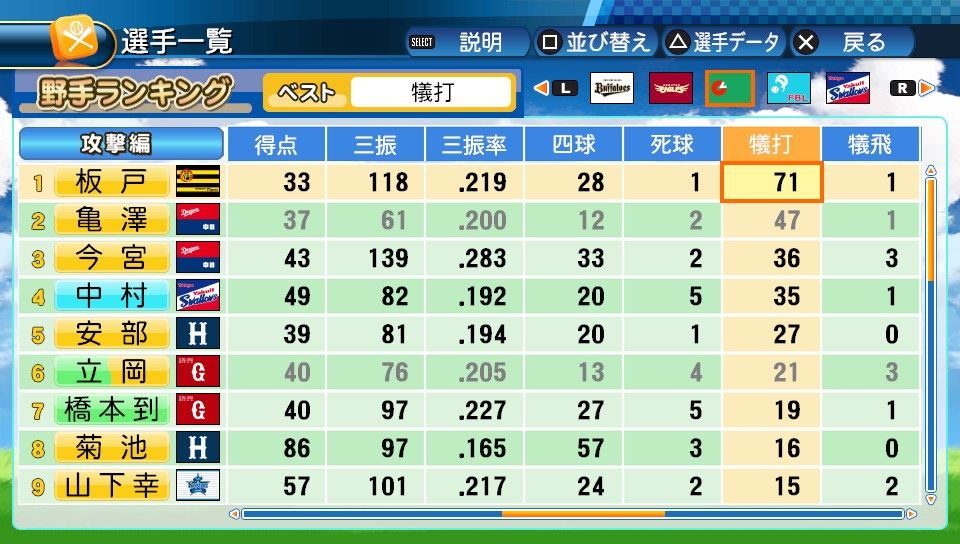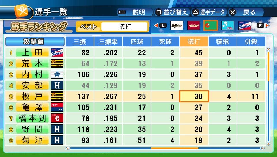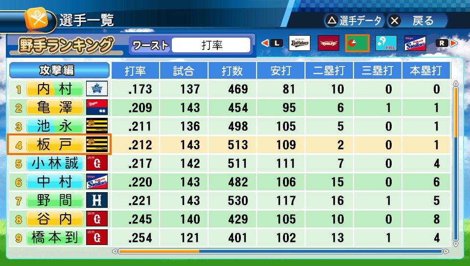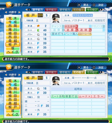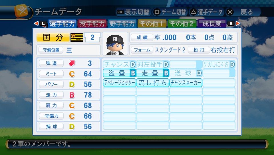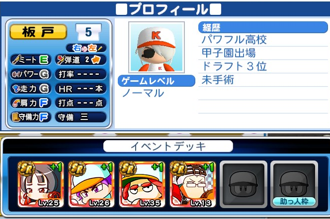 弾4EFFFEF 対左C 走塁F 送球G バント職人 三振 伝説のサヨナラ男 ムード× エラー