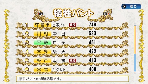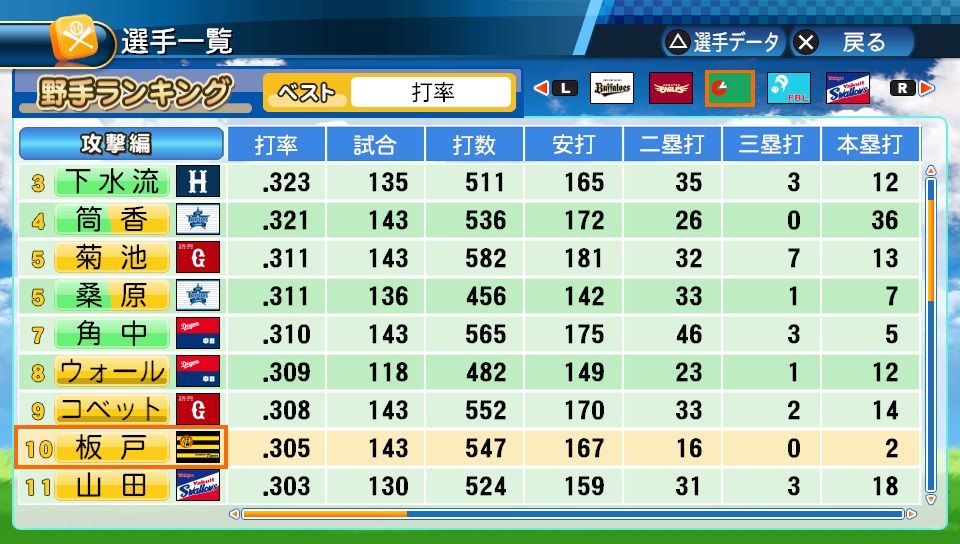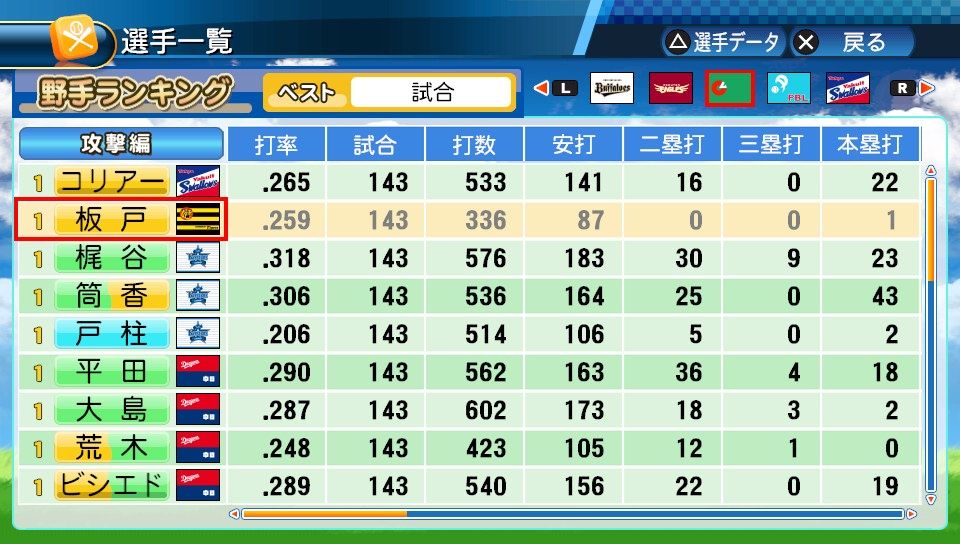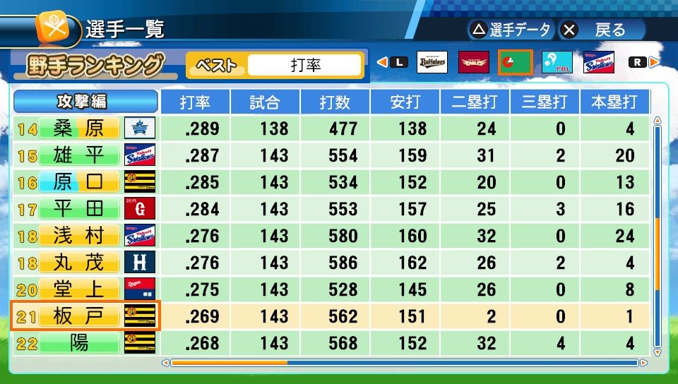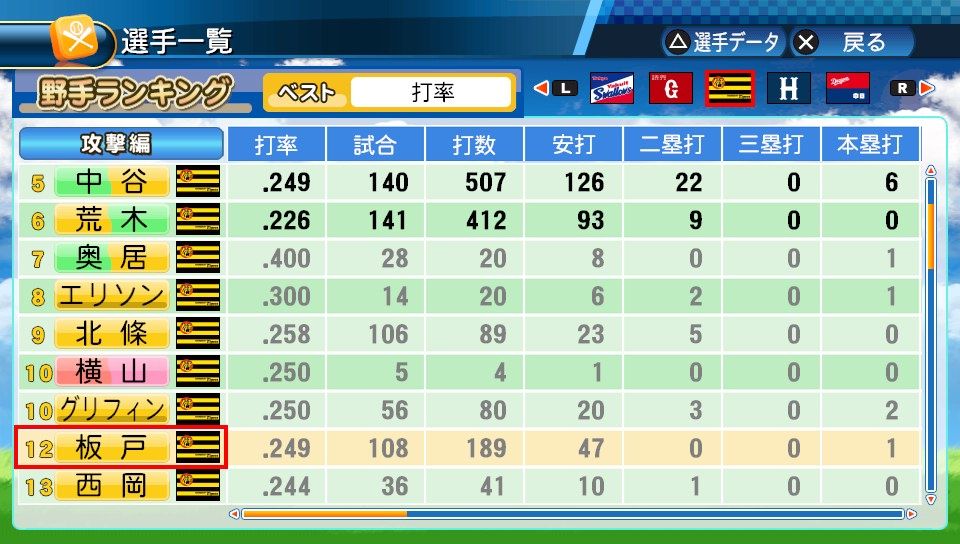 弾4EFFFFF 対左E 走塁G 送球G 固め打ち バント職人 伝説のサヨナラ男 ムード× エラー