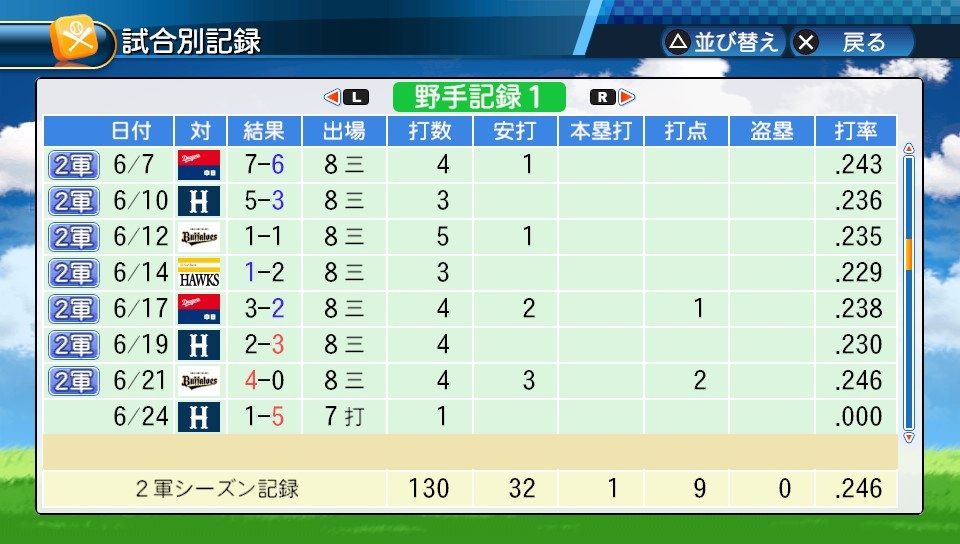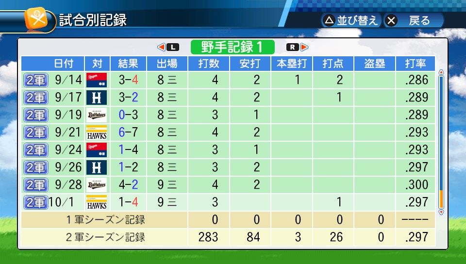 弾4EGGFFF 対左F 走塁G 送球G 固め打ち バント職人 伝説のサヨナラ男 ムード× エラー