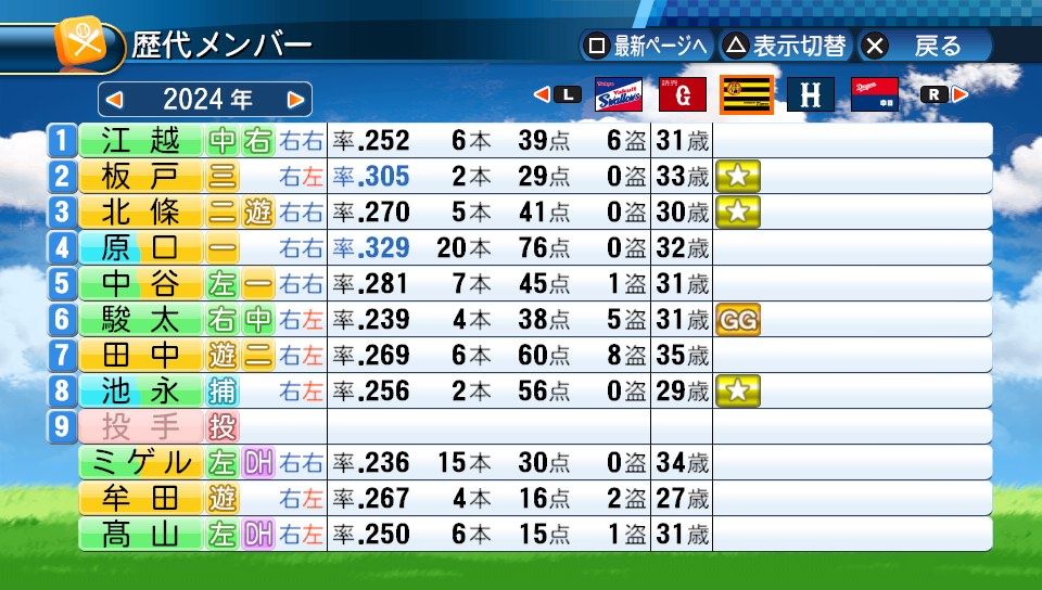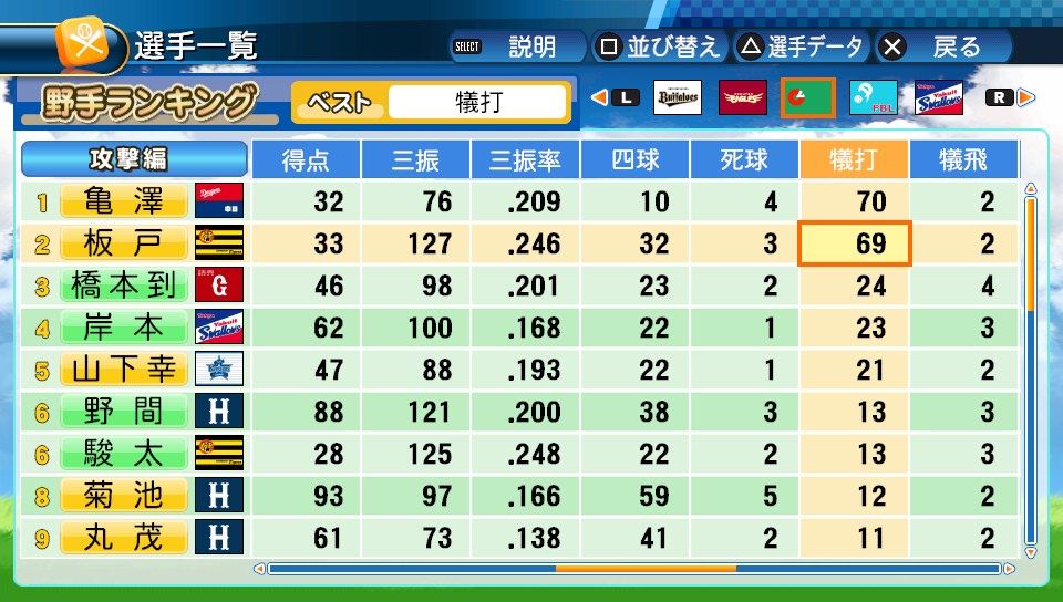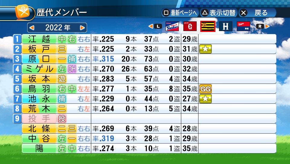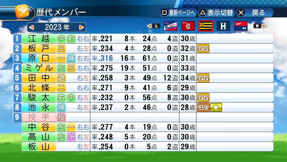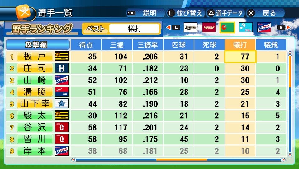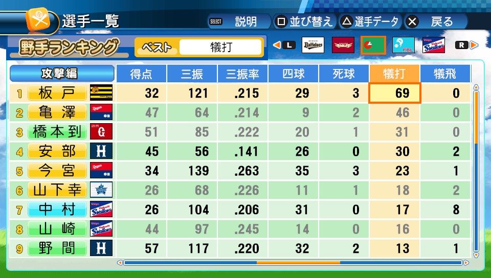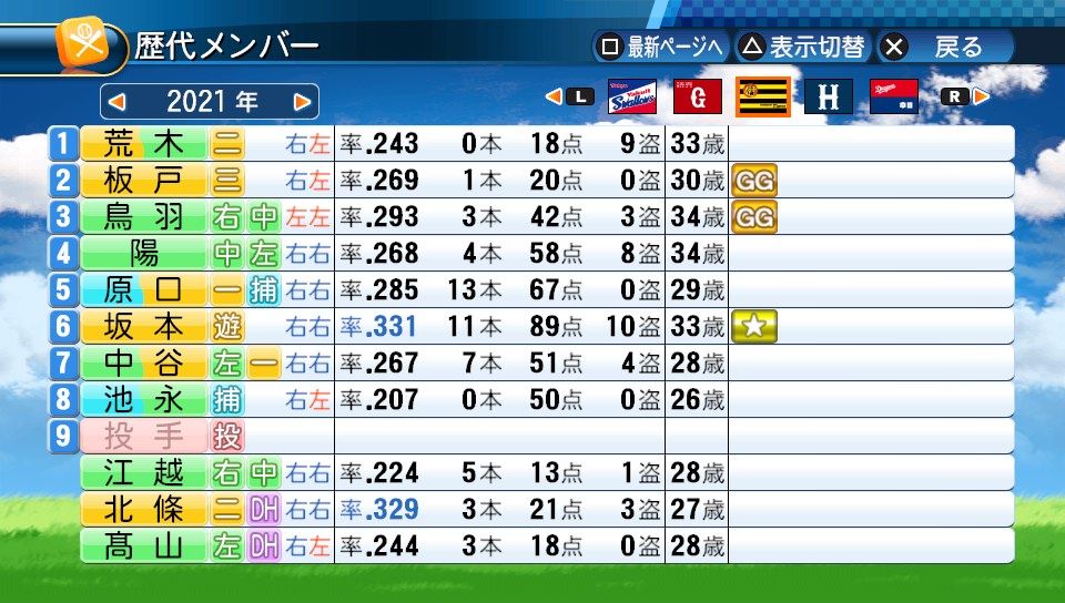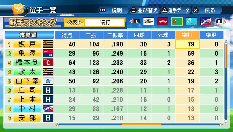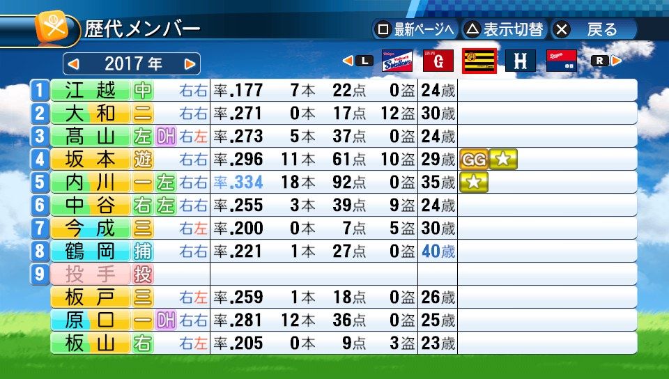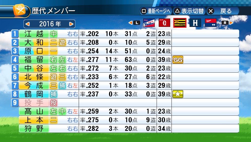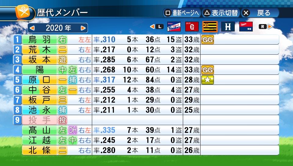 弾4EFFFEF 走塁G 送球G バント職人 三振 伝説のサヨナラ男 ムード× エラー