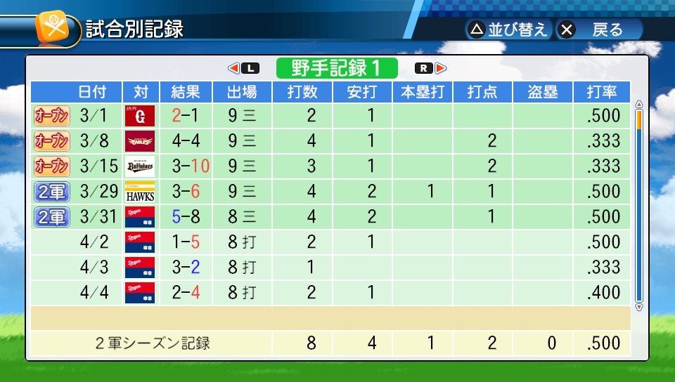 .500(8打数4安打) 1本塁打 2打点 0盗塁
