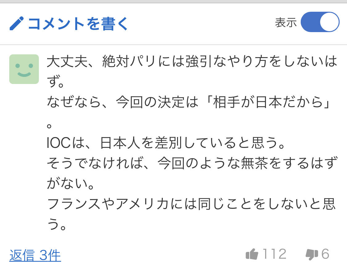 ヤフコメ民はまだIOC叩きしとんのかよ