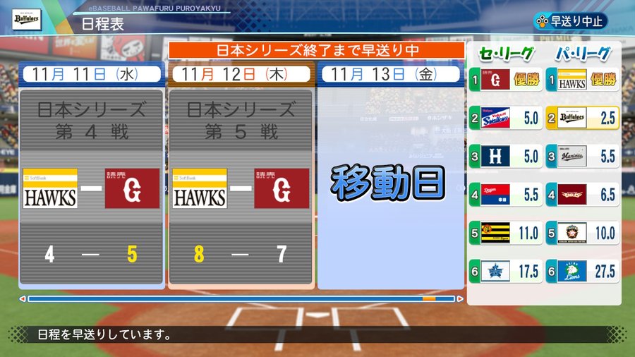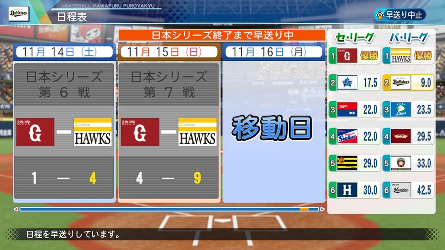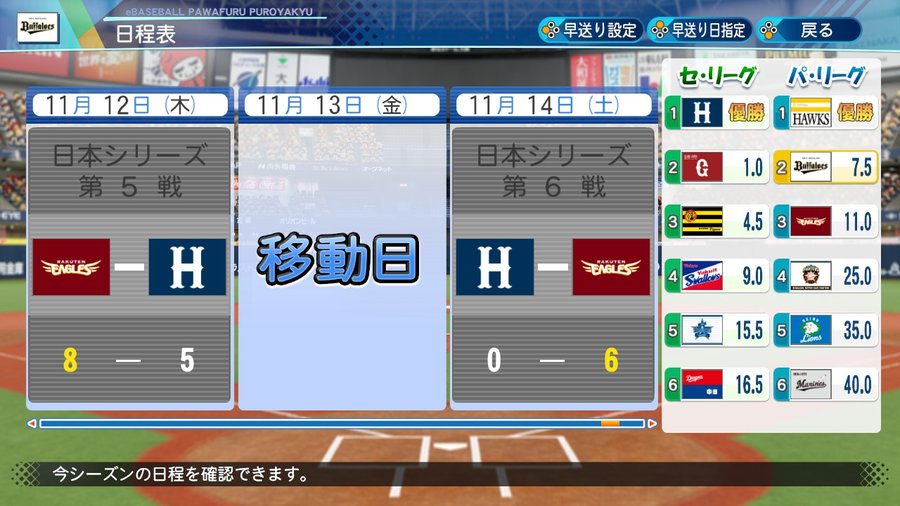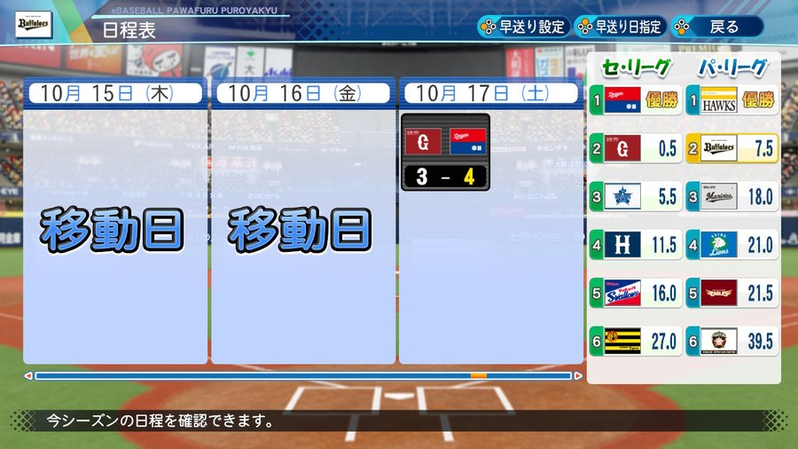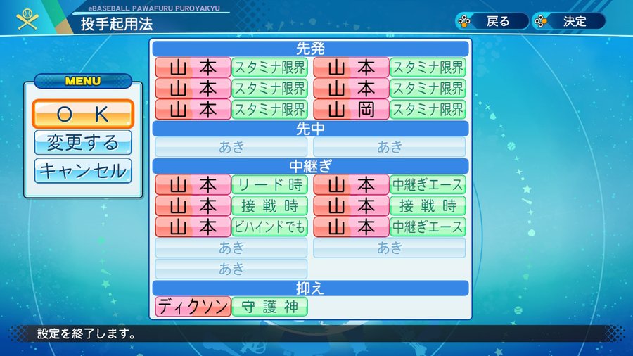 ペナント設定は怪我なし成長なしや