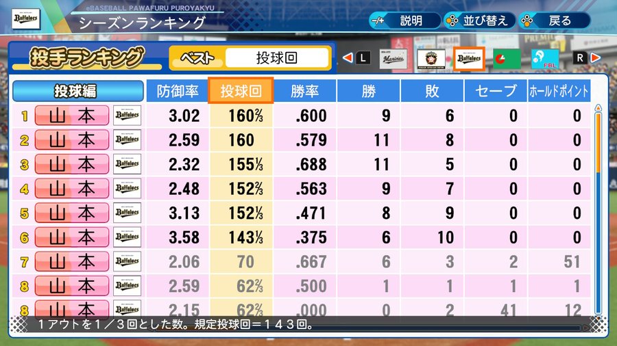 ペナントモードのオリックスで山本由伸を1人ずつ増やして何人いればパ・リーグで優勝することができるのか検証していくで