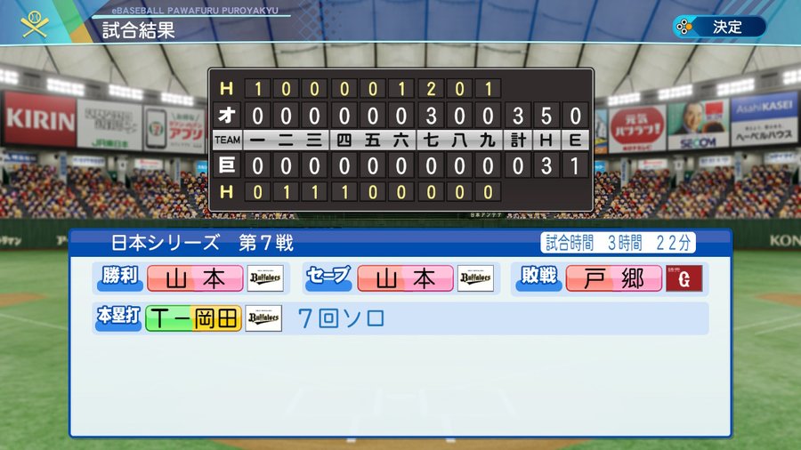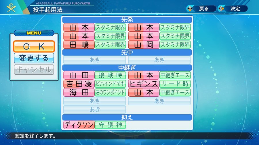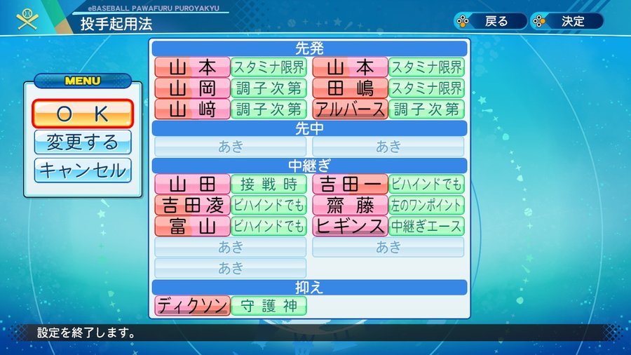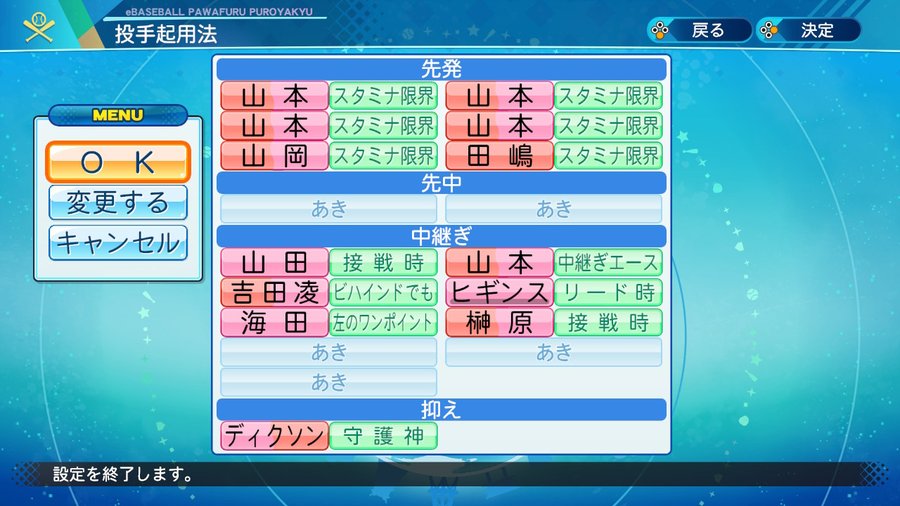 先発6人由伸、中継ぎ7人由伸、抑え由伸で僅差優勝