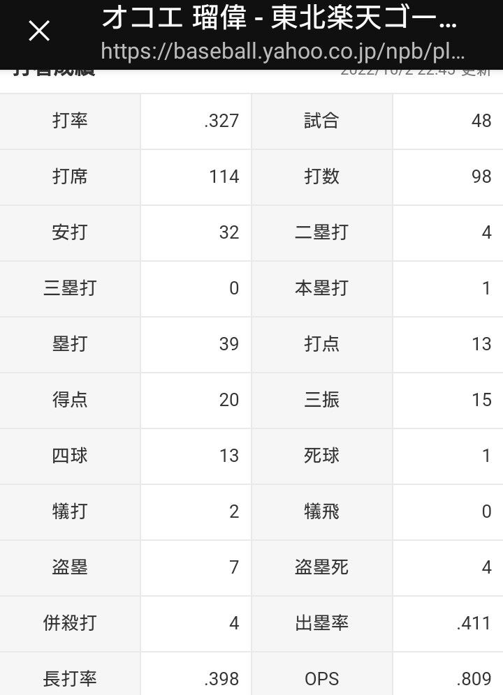 まぁ打席数少ないけど3割打ってた年もあるしなオコエ