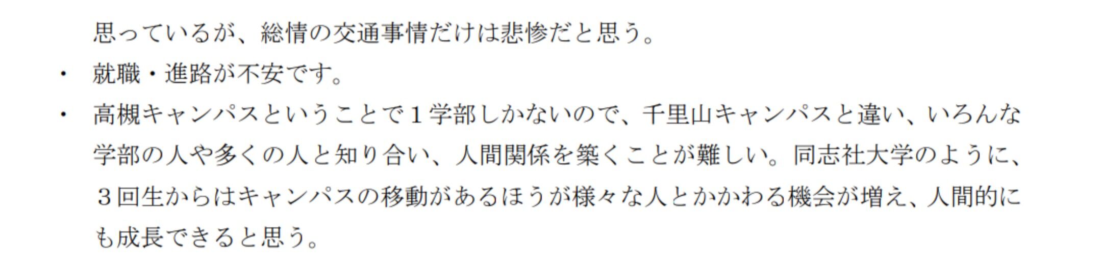 バスの本数が少ないとか全然いいじゃん。ウチなんて市立大学なのに市バスの停留所ないんだから。市バスで行こうと思うと500m以上歩くしかない