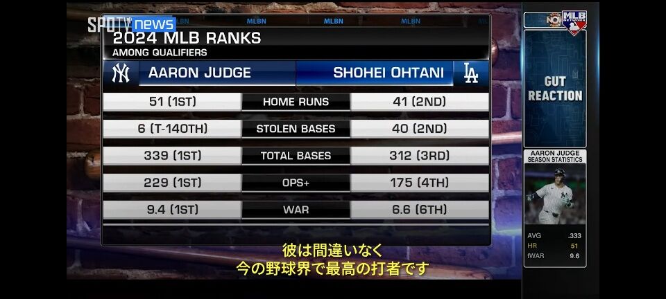 そして今年のジャッジでも圧倒的トップじゃなくてアメリカではガナヘンや大谷にちょいちょい話題を取られる程度の扱いでしかないからキレるんやろな