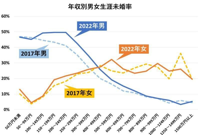 収入にはまぁ人によって上下あるけど男女共に独身まみれやからあんま関係ないと思うで