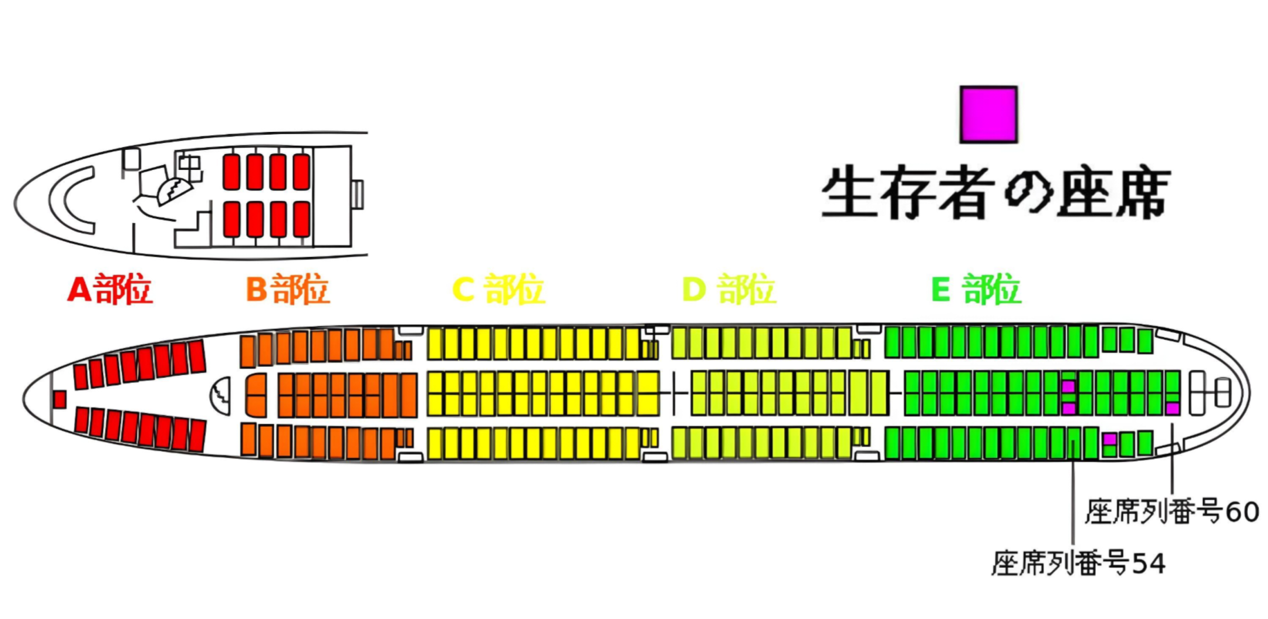 これに限らず、飛行機墜落事故で生き残ってるのはほぼ後方だから、飛行機乗る時は必ず後方の座席にしてる